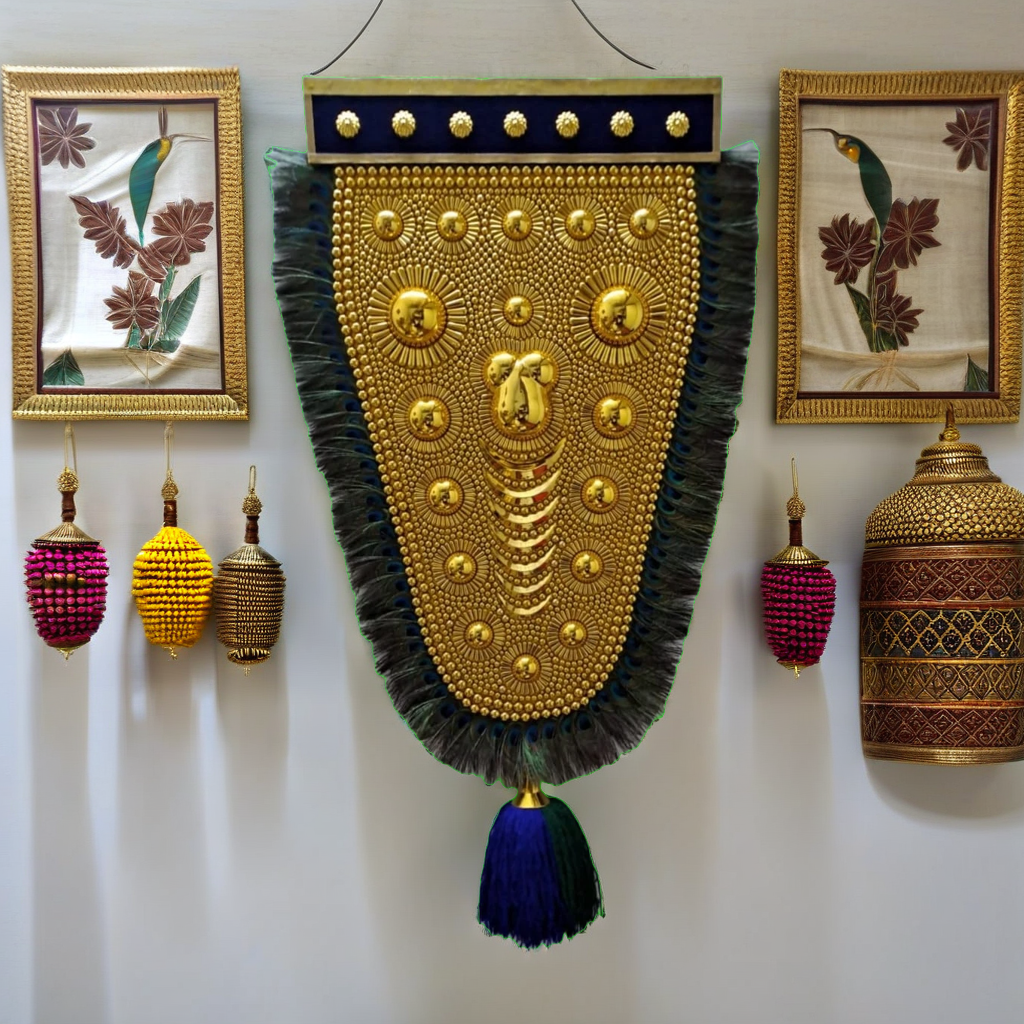2.5 Feet Nettipattam with mayilpeeli (Caparison), 100% Hand Crafted Polymer Golden Finish Wall Hanging Netipattom with mayilpeeli by Trained and Experienced Artisans from Kerala